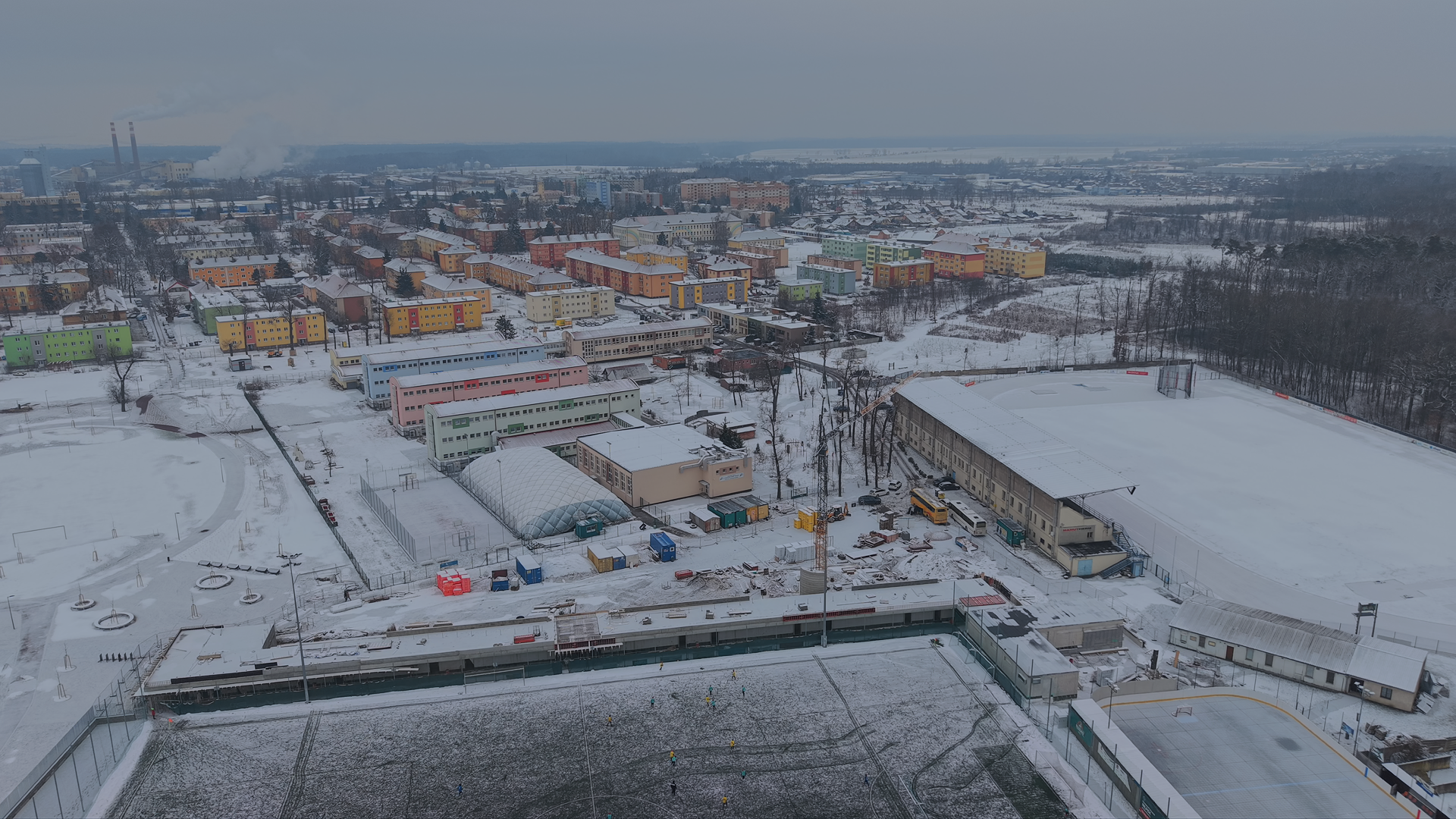 Zimní Hodonín z dronu– Hodonín pod sněhem