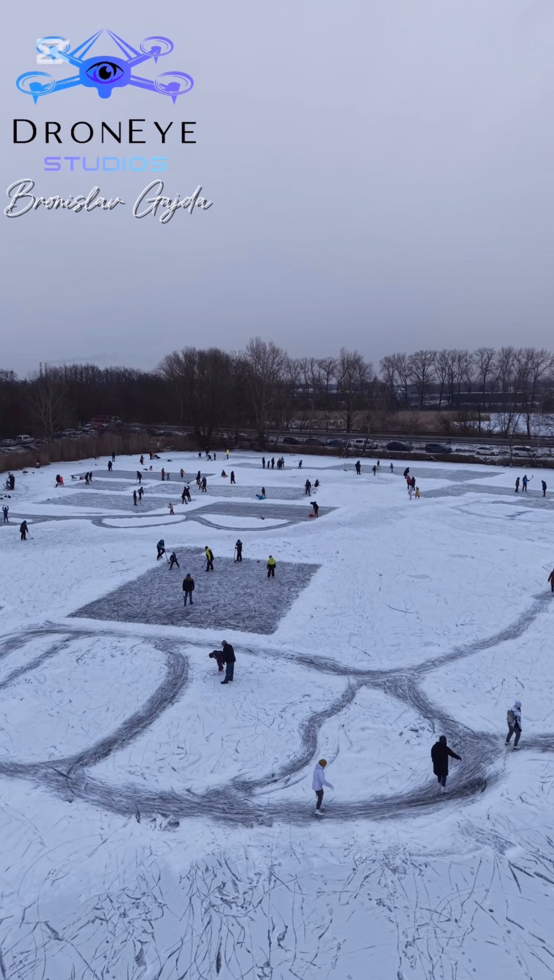 Bruslení na Písečácích v Hodonín z dronu – zimní tradice, která spojuje generace